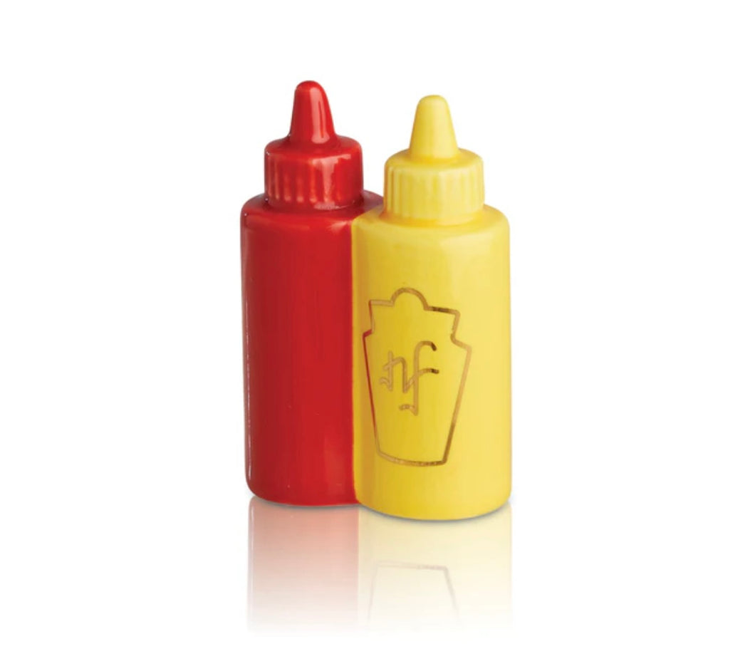 you'll love the gold nf emblem on both the sunny yellow mustard & the jubilant red ketchup!